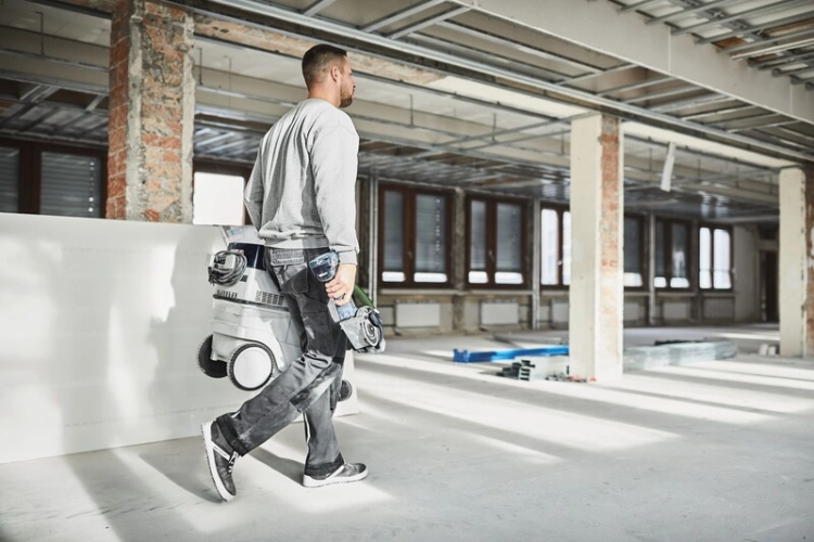 Pro zdravou práci přesunuje kryt odsávání více než 95 % prachu přímo k mobilnímu vysavači – ideální pro bezprašné dělení minerálních obrobků ve vnitřních prostorech. Otevřený design umožňuje volný výhled na místo řezu – pro jednoduchou orientaci podle nárysu. Navíc lze kryt odsávání pro řezy blízko okraje jednoduše otevřít nahoru. A odolnost proti prachu zabezpečuje zapouzdřený motor EC-TEC a chráněná elektronika. Pro ještě větší komfort akumulátor s Bluetooth® automaticky spustí spárovaný mobilní vysavač.