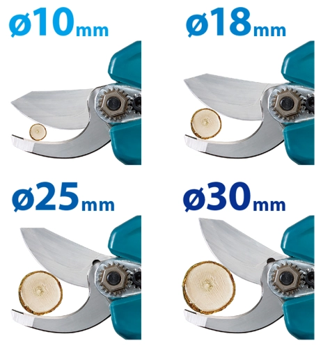 Až 2.400 střihů větví 15 mm na jedno nabití akumulátorů BL1820B