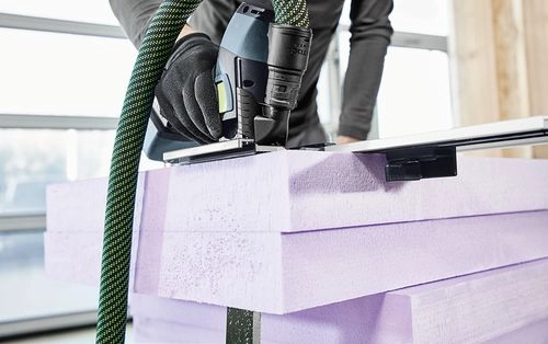 -Řezání PUR (tvrdá polyuretanová pěna) a polystyrenových izolačních desek (s řezací soupravou s pilovou lištou s rozšířenými zuby)
