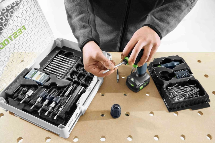 -Flexibilní šroubování a vrtání: vhodný nástavec pro vaše použití. Všechny nástavce aktuálních 18V šroubováků Festool dokonale pasují – při jednoduché, rychlé výměně nástrojů pomocí systému CENTROTEC a rozhraní FastFix.