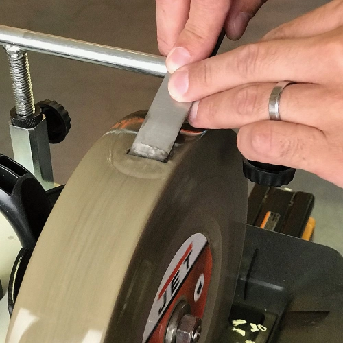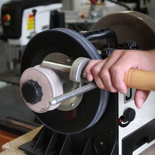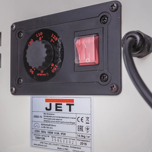 Spodní část brusného kamene je ponořena ve vodní lázni. Jak se brusný kámen otáčí, průběžně přivádí vodu na broušený povrch, a tím je chlazen a eliminuje se tak riziko přehřívání materiálu. Bruska má 90 - 150 ot./min., a 160 W motor. Otáčky motoru se mohou regulovat. Pokud je brusný kotouč průměru 250 mm, nastavte brusku na nižší otáčky 90 ot./min. Během času se bude brusný kámen obrušovat a jeho průměr se zmenší, pak použijte regulaci otáček pro dosažení optimální obvodové rychlosti a otáčky zvyšte.