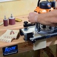 IGM cinkovací přípravek je určen pro výrobu polokrytých rybinových spojů pomocí ruční frézky a stopkové frézy. Polokryté rybinové spoje se nejčastěji používají na zásuvkách z masivního dřeva. Díky volitelným šablonám lze přípravek rozšířit na výrobu různý typů spojů, jako jsou čepové spoje, otevřené rybinové spoje, které využijete pro výrobu nábytku z masivního dřeva, šperkovnice nebo pracovní bedny z masivního dřeva. Robustní přítlaky bezpečně upnou i větší dílce. Jednoduše obrobek upevníte na tělo přípravku, upnete zvolenou šablonu, nastavíte hloubku frézování a pomocí kopírovacího kroužku upnutého v ruční frézce vyfrézujete zvolený spoj. Cinkovací přípravek je vyroben v České Republice.