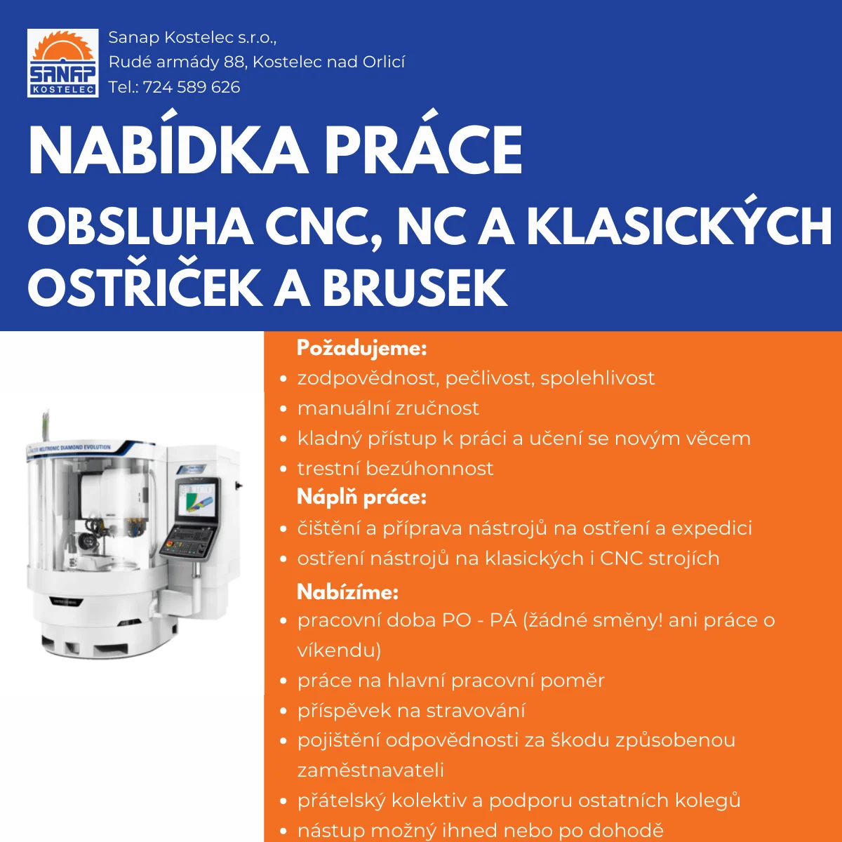 V případě zájmu zasílejte životopis na e-mail sekretariat@sanapkostelec.cz nebo volejte p. Klapala 602 460 726.