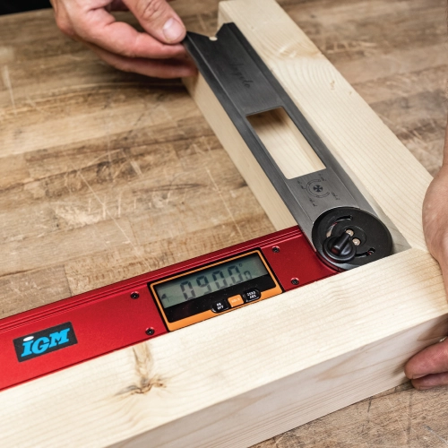 Digitální úhelník IGM s pohyblivým hliníkovým pravítkem a integrovanou vodováhou je nepostradatelným pomocníkem pro všechny truhláře, tesaře, kutily a další řemeslníky. Díky funkcím absolutního i relativního měření sklonu a možnosti aretace pohyblivého ramene můžete snadno přenášet úhly při výrobě i montáži. Grafické zobrazení kvadrantů na displeji umožňuje rychlou vizuální kontrolu polohy ramene. Robustní konstrukce z hliníku a kompaktní délka 270 mm zajišťují snadnou manipulaci i v omezeném prostoru. Ideální nástroj pro každého, kdo pracuje s přesnými spoji, sklony nebo rysy řezu.
