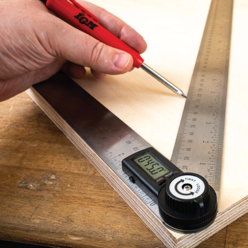 Digitální úhlové pravítko IGM je spolehlivé měřidlo pro každého řemeslníka. Snadno s ním nastavíte úhel pokosu, narýsujete rovné nebo šikmé čáry a přesně přenesete úhly mezi dílci. Pomocí dvou intuitivních tlačítek ovládáte všechny hlavní funkce, včetně nulování v libovolné poloze. Díky automatickému probuzení displeje při pohybu je připraveno k použití kdykoliv. Vhodné pro truhláře, tesaře, další řemeslníky i kutily. Díky délce 1 metr je výborný pro práci s většími dílci a pro přesné značení i měření na delších úsecích.