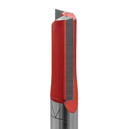 Není určená pro zavrtávání do plochy materiálu. Pro frézování podél šablony lze vložit kopírovací ložisko na stopku (s omezovacím kroužkem) nebo použít kopírovací kroužek pro ruční frézku. Díky dlouhé stopce provedete řez i hluboko do frézovaného materiálu.
