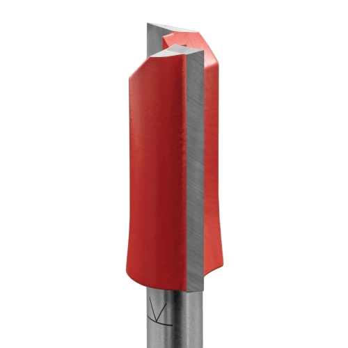 Sytě červený teflonový povlak PTFE na povrchu frézy chrání nástroj před korozí, snižuje tření a zvyšuje odolnost proti napalování třísek, lepidel a pryskyřic. Díky povlaku tak fréza zůstává čistá a zachová si ostří po delší dobu než obyčejné frézy.