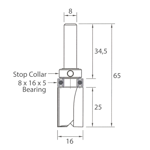 Drážkovací fréza M112 se dvěma zuby z tvrdokovu a ložiskem je určená pro ořezávání a drážkování podél šablony upevněné nad obráběným materiálem. Lze použít pouze v ručních frézkách.