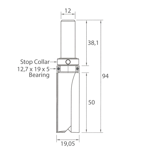 Drážkovací fréza M112 se dvěma zuby z tvrdokovu a ložiskem je určená pro ořezávání a drážkování podél šablony upevněné nad obráběným materiálem. Lze použít pouze v ručních frézkách.
