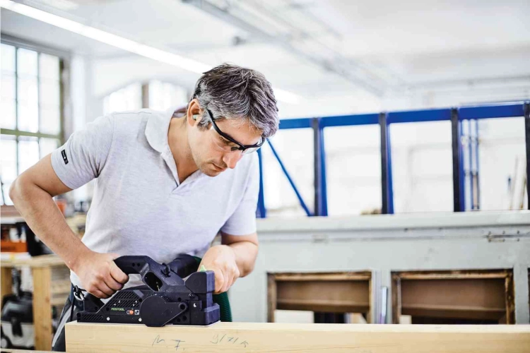 -Hoblování a drážkování až ke kraji: díky patentovanému jednostrannému uložení hoblovací hlavy pracuje elektrický hoblík HL 850 blízko okrajů a s neomezenou hloubkou drážky. Není zde omezení hloubky drážky, není nutná dodatečná práce.