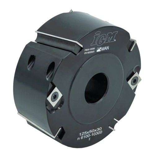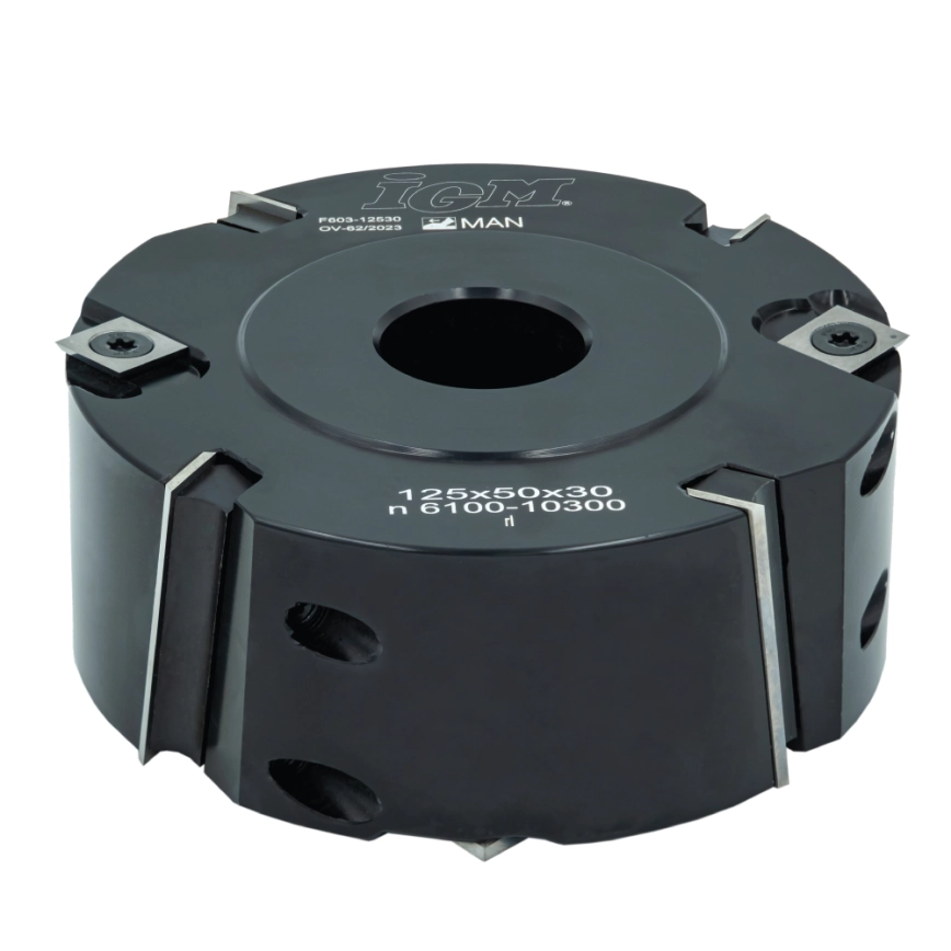 Vylepšený typ F608 se střídavě šikmými zuby, které dávají mnohem čistší řez a je možné použít rychlejší posuv než u fréz se zuby rovnými. Frézy jsou osazeny 4 předřezy pro ostré rohy a 4 uběracími šikmými zuby. Upínací průměr d=30mm.