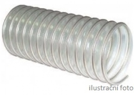 Hadice z měkčeného PVC, vyztužená protinárazovou spirálou z tvrzeného PVC.