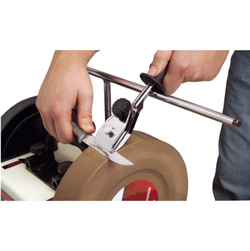 Pro broušení menších nožů. Přípravek umožňuje vybrousit správný úhel ostří nože. Nůž je pevně sevřen v přípravku. Pro jemné doladění brusného úhlu slouží otočná rukojeť. Po nabroušení celé hrany, přípravek otočíte a nabrousíte z protější hrany pod stejným úhlem.