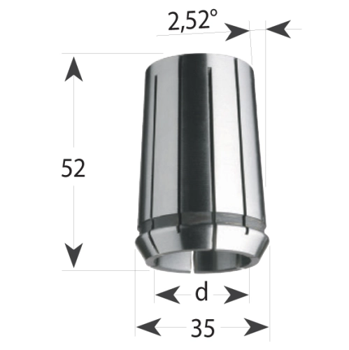 • Konzistentní silné sevření v celém délce 52mm v rozsahu 0-0,5 mm upínacího průměru.