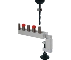 Na hraně přípravku je ryska v ose vrtacích pouzder pro snadné ustavení přípravku. Stranový doraz pro snadné zalícování s hranou desky je součástí jednoho svěráčku! (lze připevnit šroubkem - pak odpadá ladění dorazu při každém upínání). Tělo ze zvětšeného masivního profilu zaručuje zvýšenou tuhost oproti jiným modelům. Zejména při práci s masivním materiálem oceníte možnost upnutí přípravku na desky do tloušťky 35 mm!!!