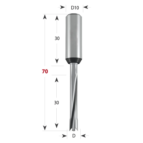 Ideální na dřevotřísku, MDF, HDF a lamináty. Vhodné pro průchozí otvory na tenkých deskách - s možností výších otáček a posuvových rychlostí. Použití v upínacích pouzdrech na kolíkovacích strojích.