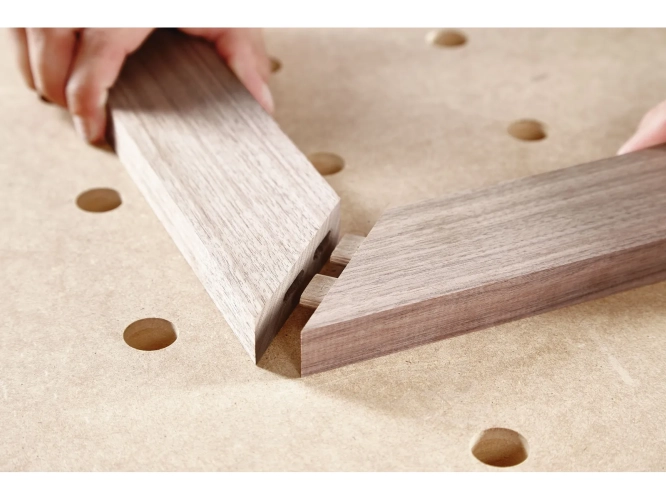 Mimořádný tvar v kombinaci s bobtnajícími kapsičkami s lepidlem a podélnými drážkami zajišťuje spolehlivou pevnost kolíků. Pro spoje absolutně odolné proti zkroucení a maximální stabilitu. A zpracování je výrazně rychlejší: první kolíkový otvor s velmi jednoduše vyrovná pomocí dorazových čepů a přesně vyfrézuje. Spojované obrobky jsou tak okamžitě upevněné přesně a s lícující hranou. Systém DOMINO toleruje i menší nepřesnosti u dalších otvorů pro kolíky.