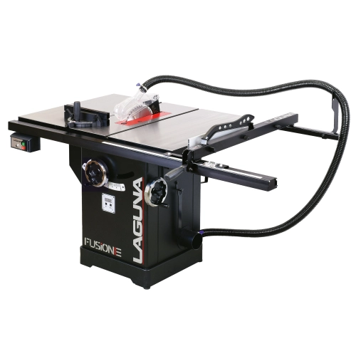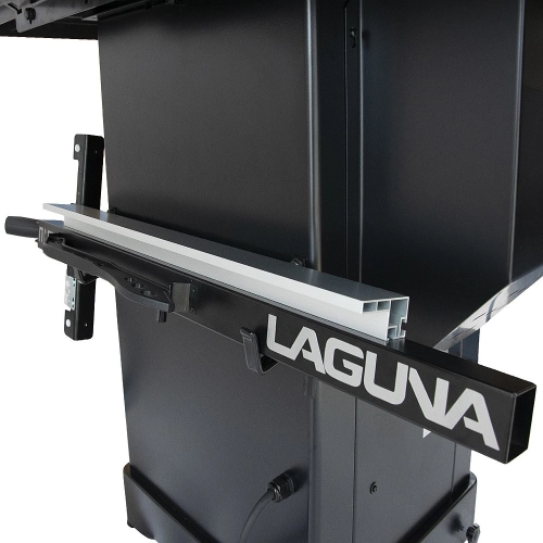 Na první pohled zaujme pila Laguna Fusion 3Dro velkým litinovým pracovním stolem, který poskytuje dostatečně velkou plochu při řezání velkých formátů. Pila je dodávána se zadním prodloužením stolu o dalších 500 mm, které oceníte při řezání delších dílců. Součástí pily je masivní podélné pravítko s rukojetí z měkčeného plastu, které lze velmi lehce posouvat a zamknout ve zvolené pozici. Hliníkový profil podélného pravítka lze překlopit o 90 stupňů pro snazší řezání tenkých dílců. Díky lupě na podélném pravítku je stupnice na vodicím profilu vždy snadno čitelná a umožní vám dokonale přesnou práci v horizontální i vertikální poloze hliníkového profilu. V litinovém stole využijete dvě praktické T-drážky pro použití úhlového pravítka z obou stran pilového kotouče.