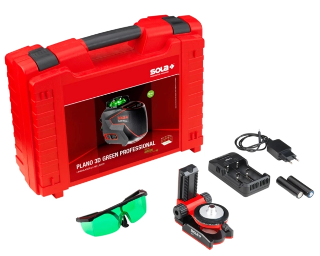 PLANO 3D GREEN je liniový laser se zelenými horizontálními a vertikálními čarami v rozsahu 360°. Liniový laser PLANO 3D GREEN je jako žádný jiný laserový přístroj vhodný pro precizní vyrovnávání v místnostech. Díky individuálně zapínatelným čarám jej lze využít k velkému množství úkolů. Vysoce kvalitní a ostré laserové čáry REAL GREEN zajišťují perfektní viditelnost při absolutní přesnosti. Vybaven vysoce výkonnými lithium-iontovými akumulátorovými