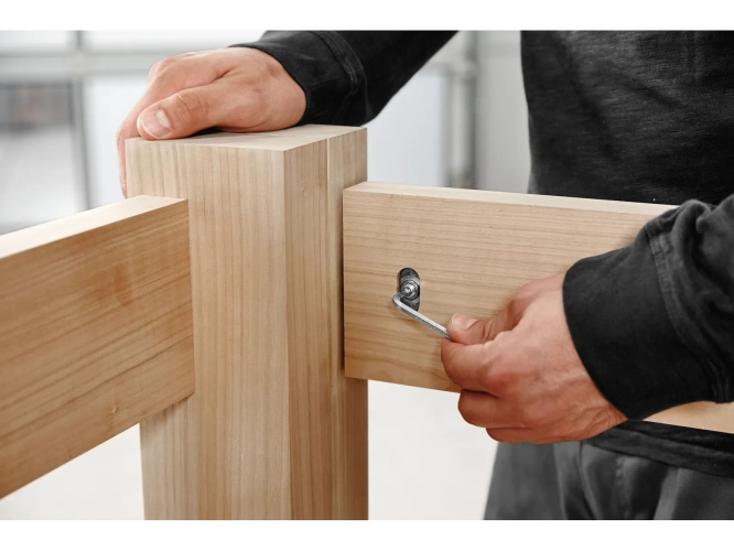 -Systém úhlových a plošných svorníků pro frézku na kolíkové otvory DOMINO XL DF 700 umožňuje stabilní, znovu rozpojitelné spoje od tloušťky materiálu 30 mm