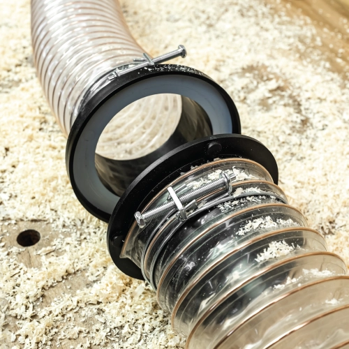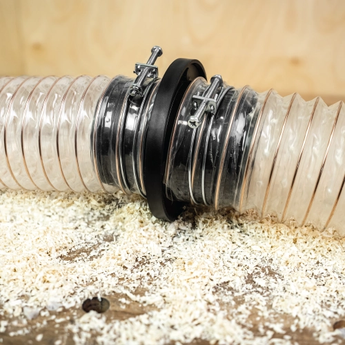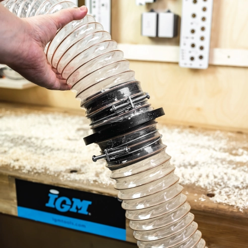 IGM Magnetický konektor odsávání pro hadice o průměru 100 mm. Slouží pro rychlé spojení a odpojení hadice mezi strojem a odsavačem. Konektor se skládá ze dvou částí. Jedna část konektoru je osazena 8 magnety, druhá zmagnetizovaným kroužkem. Součástí jsou dvě šroubovací spony pro trvalé upnutí k hadici.