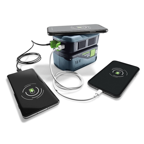 -Kompatibilní: stejně jako klasické akumulátorové nářadí lze nabíječku pro chytré telefony nasadit na všechny 18V akumulátory Festool (kromě akumulátoru 3,0/3,1 Ah Ergo)