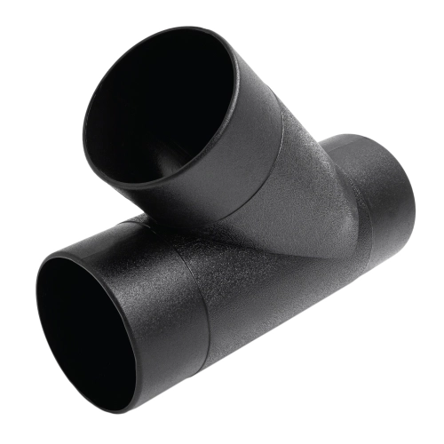 T-odbočka hadice nebo potrubí 45° je vyrobena z vysoce kvalitního ABS plastu s hladkým vnitřním otvorem. Vnější průměr odbočky dokonale sedí do vnitřního otvoru ohebné hadice. Hadici po nasunutí na odbočku zajistíte pomocí spony. Určeno pro hadice o průměru 100 mm.