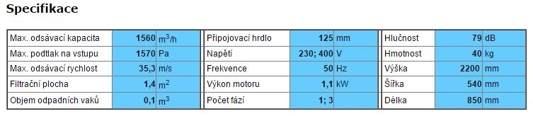 Celokovové provedení, kvalitní rotor z hliníkové slitiny a výkonný motor umožňující dosáhnout spolehlivou funkci a dostatečnou odsávací rychlost.
