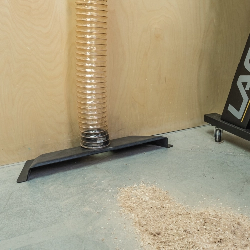 Odsávací koncovka na podlahu je levné řešení odsávání, čištění a úklidu na podlaze. Koncovka je navržena speciálně pro malé dílny nebo ke strojům, které nemají vlastní odsávání a třísky padají volně za zem. Koncovka funguje jako sběrné místo, ke kterému je třeba odpad namést. Koncovka se snadno připevní k podlaze oboustrannou lepicí páskou a napojí na odsávací hadici průměru 100mm.