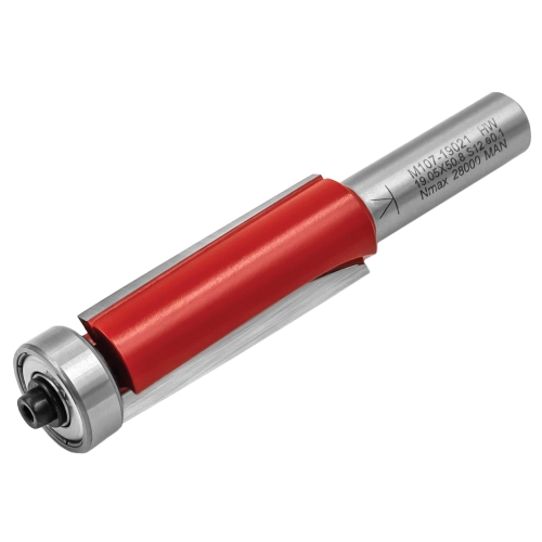Ořezávací fréza M107 se dvěma šikmými zuby z tvrdokovu a kopírovacím ložiskem je určená pro ořezávání podél šablony upevněné pod obráběným materiálem, zejména pro frézování zakřivených tvarů. Lze použít pouze v ručních frézkách.
