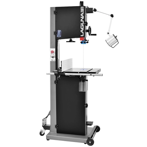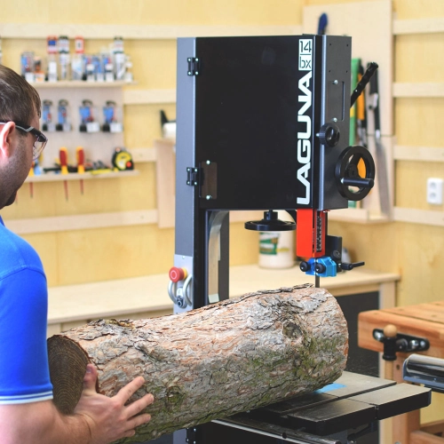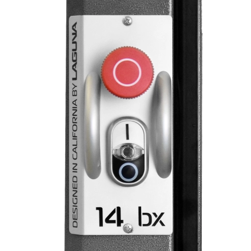 Pásová pila IGM Laguna 14BX je vybavena těžkým stabilním rámem a silným 1,9 kW asynchronním motorem. Broušený pracovní litinový stůl o rozměrech 546 x 406 mm poskytuje stabilitu i při řezání větších dílců. Stůl lze naklopit v rozmezí od -7° do +45°. Vysoké podélné pravítko je snadno nastavitelné a lze nainstalovat do dvou pozic (vertikálně a horizontálně). Pevná litá kola jsou vyvážená a opatřená polyuretanovým páskem po celém obvodu kola. Pásek je navržen tak, aby zvládal vyšší teplotu a vydržel déle než běžné pryžové výplně kol. Šnekový převod horního vedení pásu zaručuje maximální stabilitu i při nejvyšší výšce řezu. Pro okamžité zastavení pily je spodní kolo vybaveno kotoučovou brzdou, která se aktivuje sešlápnutím pedálu.
