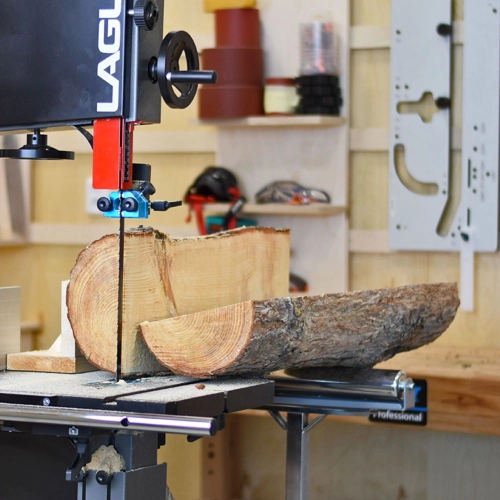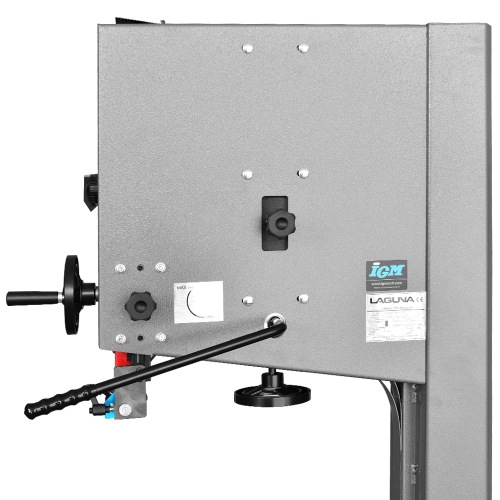 Pila je vybavena odolnými keramickými vodítky pilového pásu nad i pod stolem. Keramická vodítka poskytují velmi přesné vedení, zaručují ideální kvalitu řezu a prodlužují životnost pilového pásu. Průhledy v horní části stroje vám umožní kontrolovat napnutí nebo uvolnění pásu za chodu, nebo případné sjíždění pásu z kola. Praktickým prvkem je také páka na zadní straně pily pro rychlé uvolnění pásu. Pila IGM Laguna 14BX se odlišuje proti konkurenci především promyšlenou konstrukcí, která umožňuje vysoký řez až 330 mm.