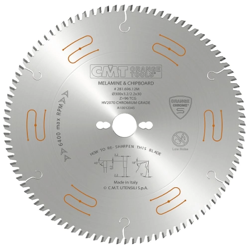 Pilový kotouč pro pily s předřezem. Kotouč s chromovaným povrchem, který redukuje ulpívání zbytků lepidla a pryskyřice na těle kotouče. Trapézové zuby z extra tvrdého tvrdokovu pro řezání lamina, dřevotřískových desek a MDF. Má tlumící drážky vyplněné oranžovým polyuretanem pro snížení vibrací a hlučnosti. Vysoká životnost díky mimořádně tvrdým zubům KCR05+ s tvrdostí HV10:2170.