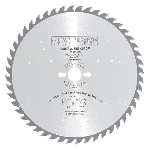 Pilový kotouč pro čisté řezy tvrdého a měkkého dřeva, překližky, dřevotřísky, lamina a MDF. Střídavé zuby s 10, 15 nebo 20 stupňovým úhlem čela. Pro všechny typy strojů. Vysoká životnost tvrdokovových zubů.
