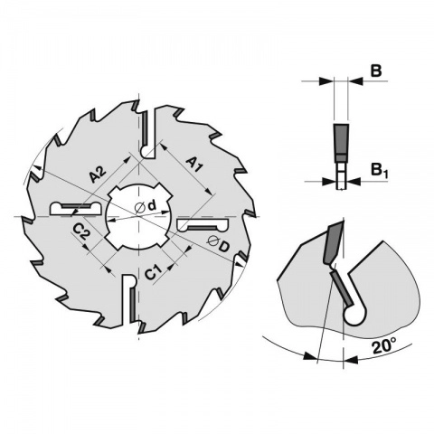 Tyto pilové kotouče davají možnost rozmítat dřevo až po upínací přírubu pilového kotouče bez ztráty stability těla pilového kotouče při velkém bočním namáhání, tímto zajišťuje maximální využití stroje, svou konstrukcí unášecích drážek také nabízí možnost plynulejšího záběru do řezu.