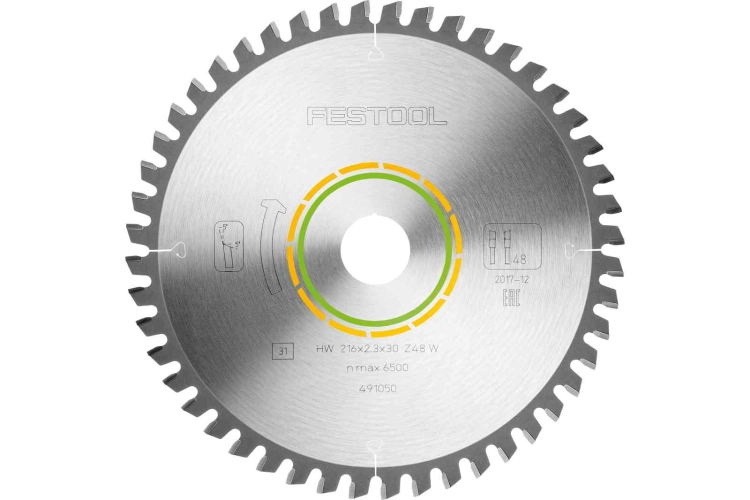 -Díky barevnému rozlišení Festool lze rychle najít správný pilový kotouč nebo pilový plátek: žlutá barva znamená řezání dřeva.