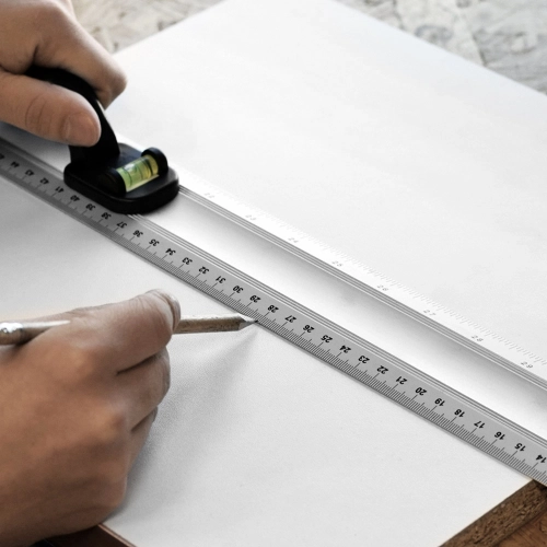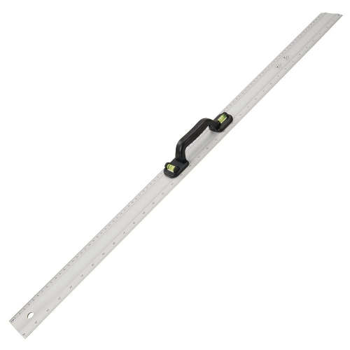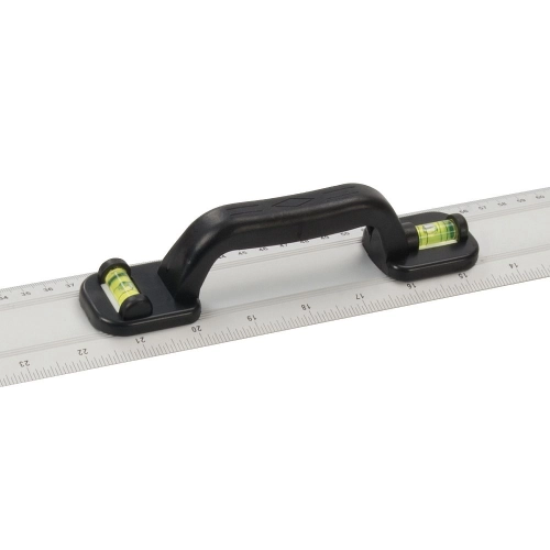Hliníkové pravítko s libelami pro přesné řezání a značení.