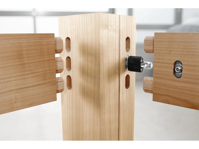 -Systém úhlových a plošných svorníků pro frézku na kolíkové otvory DOMINO XL DF 700 umožňuje stabilní, znovu rozpojitelné spoje od tloušťky materiálu 30 mm