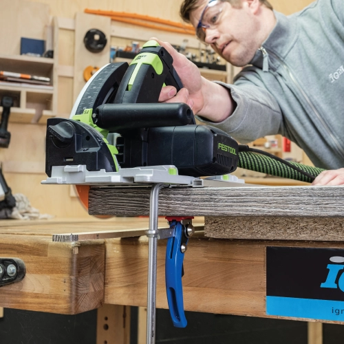 Rychloupínací páková svěrka IGM je ideální pro upnutí hliníkových vodicích lišt a k upínání materiálu na rastrovém pracovním stolu. Ideální pomocník pro upnutí vodících lišt od značek Festool, Makita a další. Upínací rameno, která se zasouvá do lišty, má rozměr 12 mm x 7,4 mm x 60 mm. Ráčnová rukojeť má vynikající účinnost upnutí a extrémně rychlé sevření. Po sevření je rukojeť pevná a neuvolňují ji vibrace z elektrického nářadí.