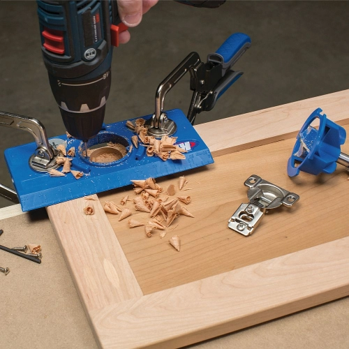 Šablona je navržena tak, aby byla intuitivní pro začátečníky i dostačující pro profesionály. Vyberte si panty, prostudujte montážní pokyny, které jsou s nimi dodávány, a nastavte šablonu otočením excentrů. Poté jste připraveni vyvrtat otvory pro misky pantů použitím jakékoliv vrtačky. Ať už montujete jedny dvířka skříně nebo vyrábíte dvířka pro celou kuchyň, Šablona pro vrtání otvorů pro misky pantů poskytuje spolehlivé a konzistentní výsledky a jde tedy o ideální pomůcku pro montáž nábytku a kuchyní.