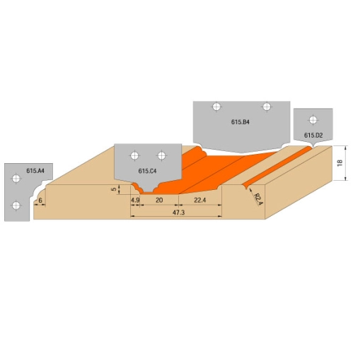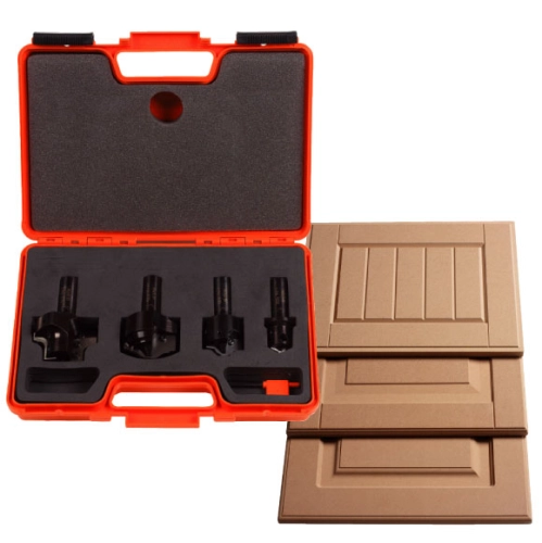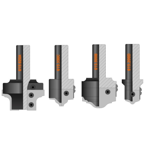 Sada zahrnuje 4ks stopkových fréz osazených HM žiletkami s profilem č.1. Na stopkové frézy, které jsou vyrobeny z pevnostní oceli a jsou precizně vyvážené, lze kdykoliv domontovat i další 4 sady profilů. Celkem je tak možné osadit nástroje až 5 -ti sadami profilových HM žiletek a vyfrézovat tak různé profilová dvířka dle Vašeho výběru.