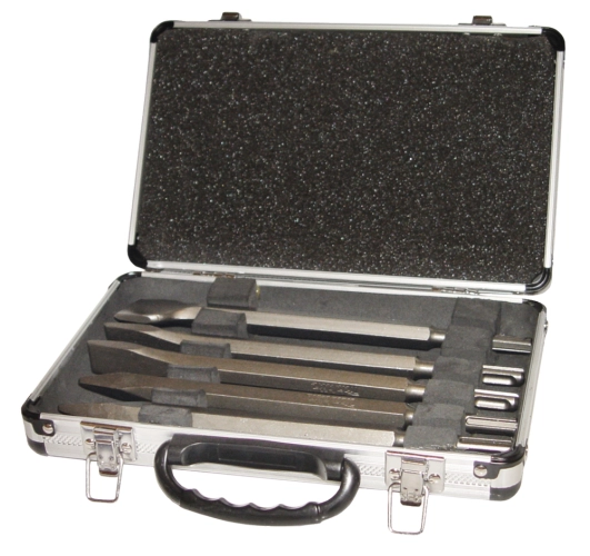 Sada sekáčů 5 ks SDS - plus v hliníkovém kufru (plochý sekáč 250 x 40, 2x plochý sekáč 250 x 20, 2x špičák 250 mm)