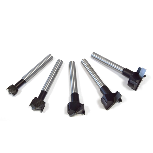 Tělo je z pevnostní oceli s připájenými tvrdokovovými břity.Jeden středící hrot a dva předřezové hroty.5-dílná sada: D 15 - 20 - 25 - 30 - 35 mm.• Stopka: S=10 mm• Celková délka: L=90 mm