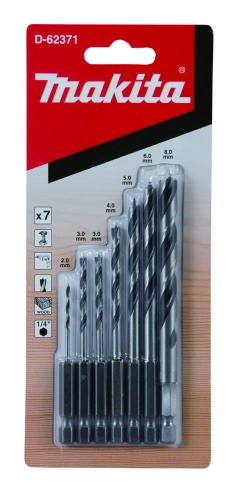 Sada vrtáků do dřeva 2-8mm (po 1), stopka HEX 1/4", 9ks D-62371 MAKITA