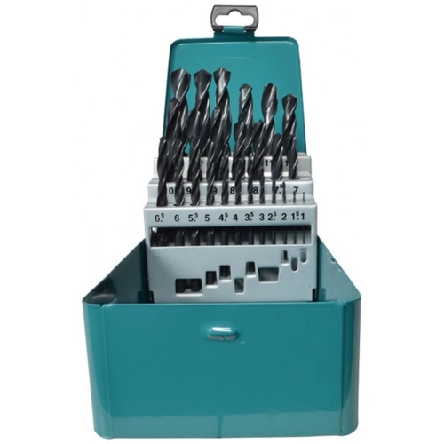 Sada obsahuje vrtáky do kovu 25 ks o průměru: 1, 1.5, 2, 2.5, 3, 3.5, 4, 4.5, 5, 5.5, 6, 6.5, 7, 7.5, 8, 8.5, 9, 9.5, 10, 10.5, 11, 11.5, 12, 12.5, 13 mm. Dodáváno v kovové krabičce.