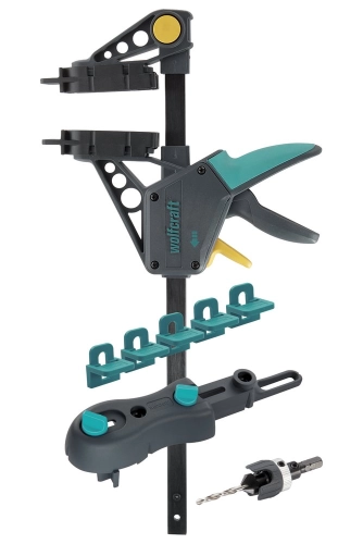 1 x pomůcka na vrtání do palubky, s vrtacími pouzdry 4 mm z kalené oceli pro bezpečné vedení vrtáku