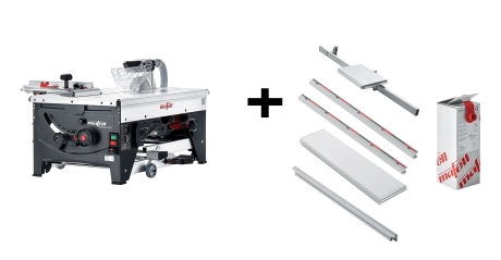 Posuvné saně 038563 + lin. doraz 203396 + dodatečný stůl + 2x opěrná a pevná lišta MAFELL