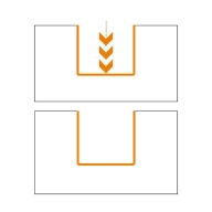 Drážkovací stopková fréza se dvěma otočnými žiletkami naostřenými na 4 stranách. Výměnné žiletky mají závrtnou část zkosenou pod úhlem 3 stupně, což usnadňuje postupné zavrtávání do materiálu. Řez je hladký, bez otřepů a rýh. Tyto frézy jsou určeny pro ořezávání, formátování a drážkování.