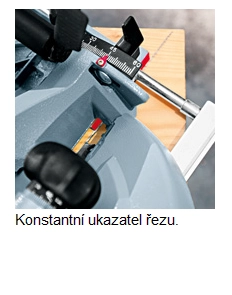 Konstantní pozice ukazatele řezu mezi 0° a 60° díky přesnému otočnému bobu, který je umístěn na spodní straně stolu.