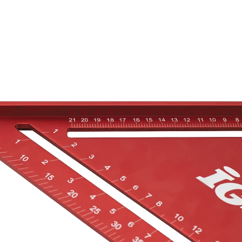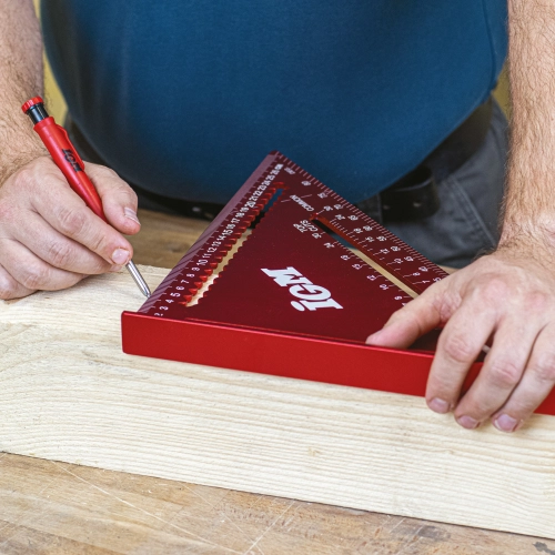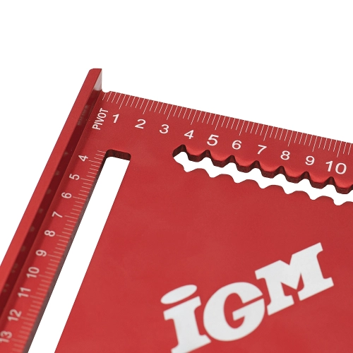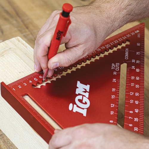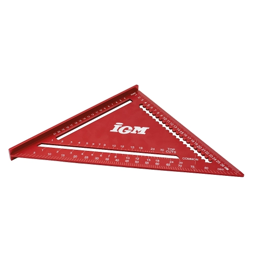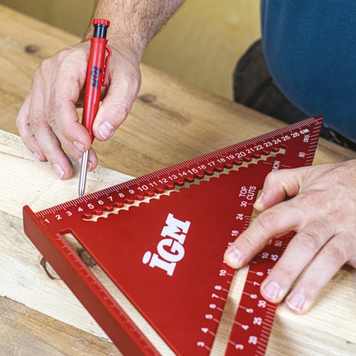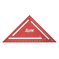 Přesný duralový IGM Tesařský úhelník je nutností pro každého tesaře. Robustní úhelník má snadno čitelné, laserem značené stupnice na obou stranách. Kolmá strana je dlouhá 180 / 300 mm se zářezy po 5 mm, což umožňuje rychlé podélné rýsování rovnoběžných čar. Přepona má stupnici od 0° do 90° a stupnici pro tvorbu běžných krokví, nárožních a úžlabních trámů. Je ideální pro rychlé rýsování čar nebo jako vodítko pily. Výrazně zjednodušuje stavbu střešní konstrukce.